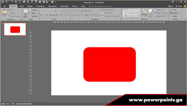Setelah Layoutnya kosong, sekarang sobat buat persegi panjang dengan cara klik Tab Insert >> Shape >> Rectangle rounded, buat sesuai keinginan sobat. Setelah itu ubah warna shape menjadi merah dengan cara klik Tab Format >> Shape Fill >> Red. Masih pada Tab Format, kemudian hilangkan garis tepinya degan cara klik Shape Outline >> No Outline. Lagi-lagi masih pada Tab Format, buat shape menjadi agak menonjol (efek 3d) dengan cara klik Shape Effects >> Preset >> Preset 3. Jika sudah, maka hasilnya akan seperti gambar dibawah ini.4. Membuat Segitiga